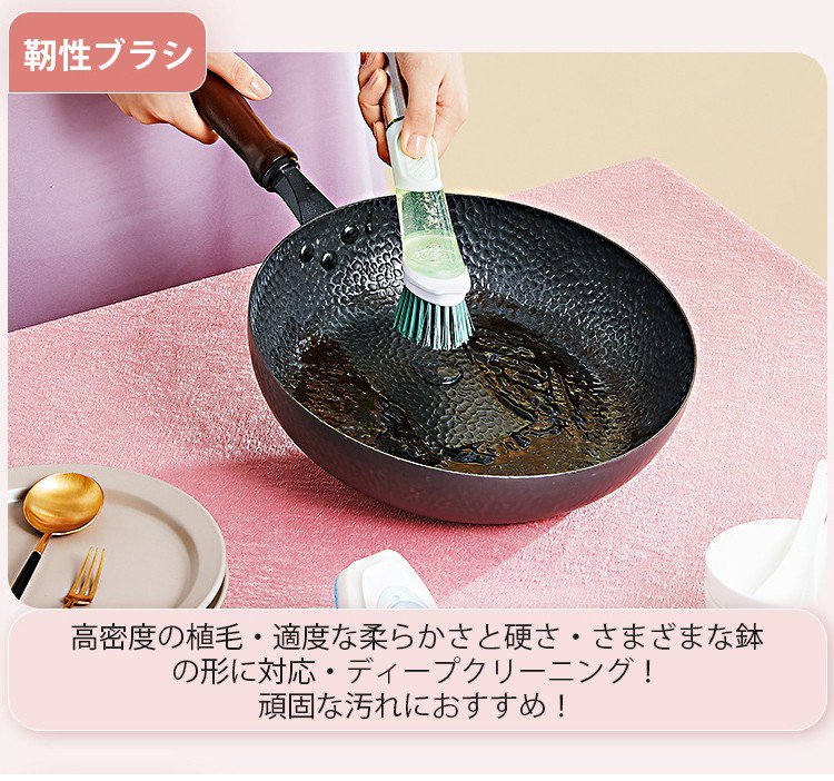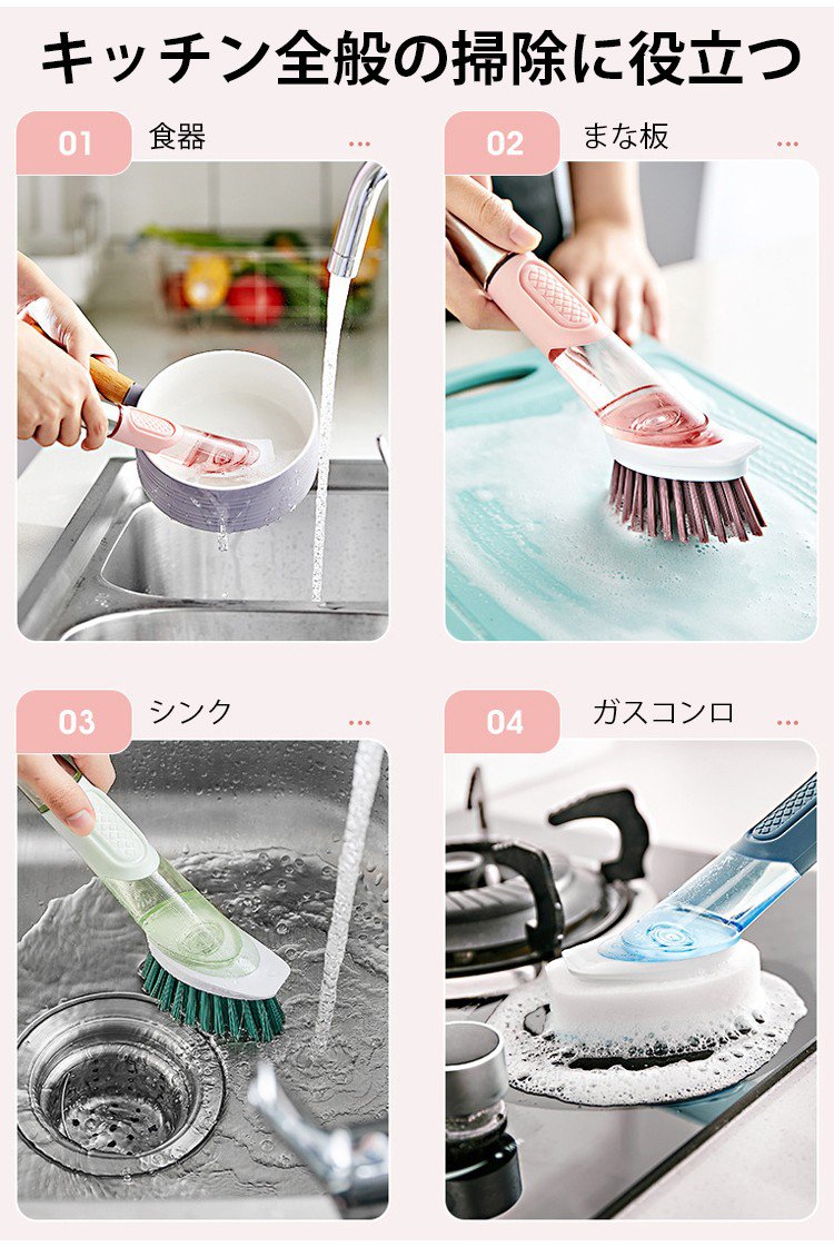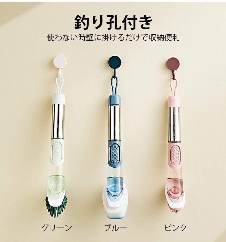 【キッチン用ブラシ】使うたびに洗剤をつける必要のないワンプッシュ式